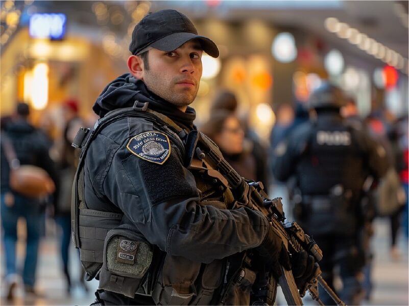 - Extensive Training: Our armed officers complete advanced tactical training in conflict de-escalation, emergency response, firearm safety, defensive tactics, and situational awareness. Many have military or law enforcement backgrounds.